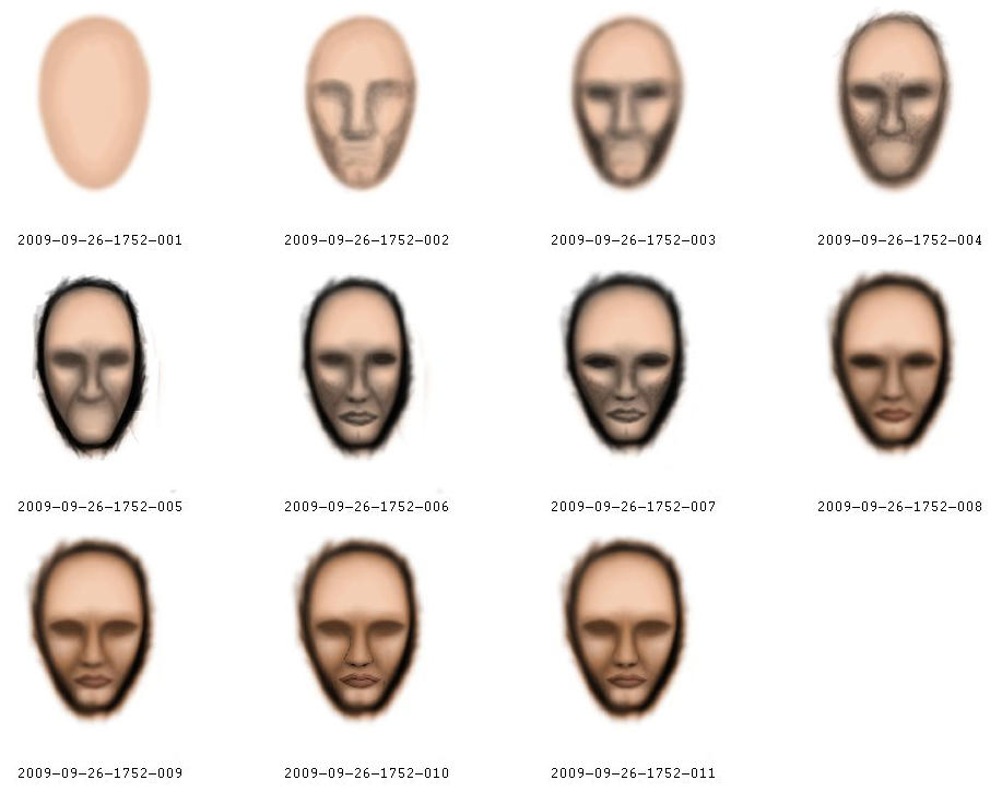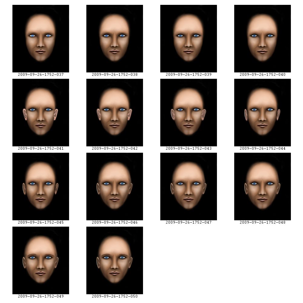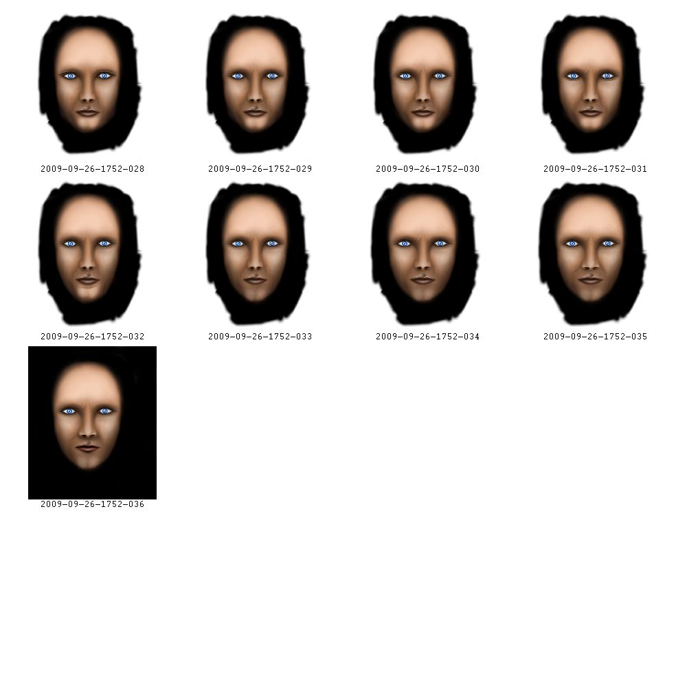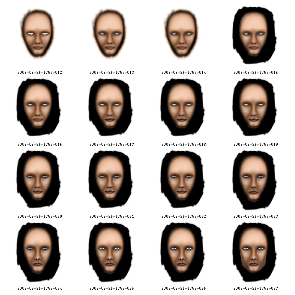 Wie man sieht, ähnelt das meiner Arbeitsweise, die ich bei meinem Avatar angewendet habe. Ergo lag ich gar nicht mal so falsch damit ^^ *freu spring hüpf* :D Nun stellte sich mir beim längeren betrachten dieses Bildes die Frage, "Was ist es das ein Gesicht weiblich macht"? Die Gesichtsform alleine kann es nicht sein, denn in der ersten Reihe des Bildes würde ich eher dazu tendieren das daraus ein männliches Gesicht wird. Also sollte es vorallem an der Konstellation und Darstellung aus Augen, Nase und Mund ergeben, denke ich mir mal. Was mich wiederum zu der Frage führt, "Was sind dann ganz konkret formuliert die Elemente aus dieser Konstellation, die ein Gesicht weiblich wirken lassen"?