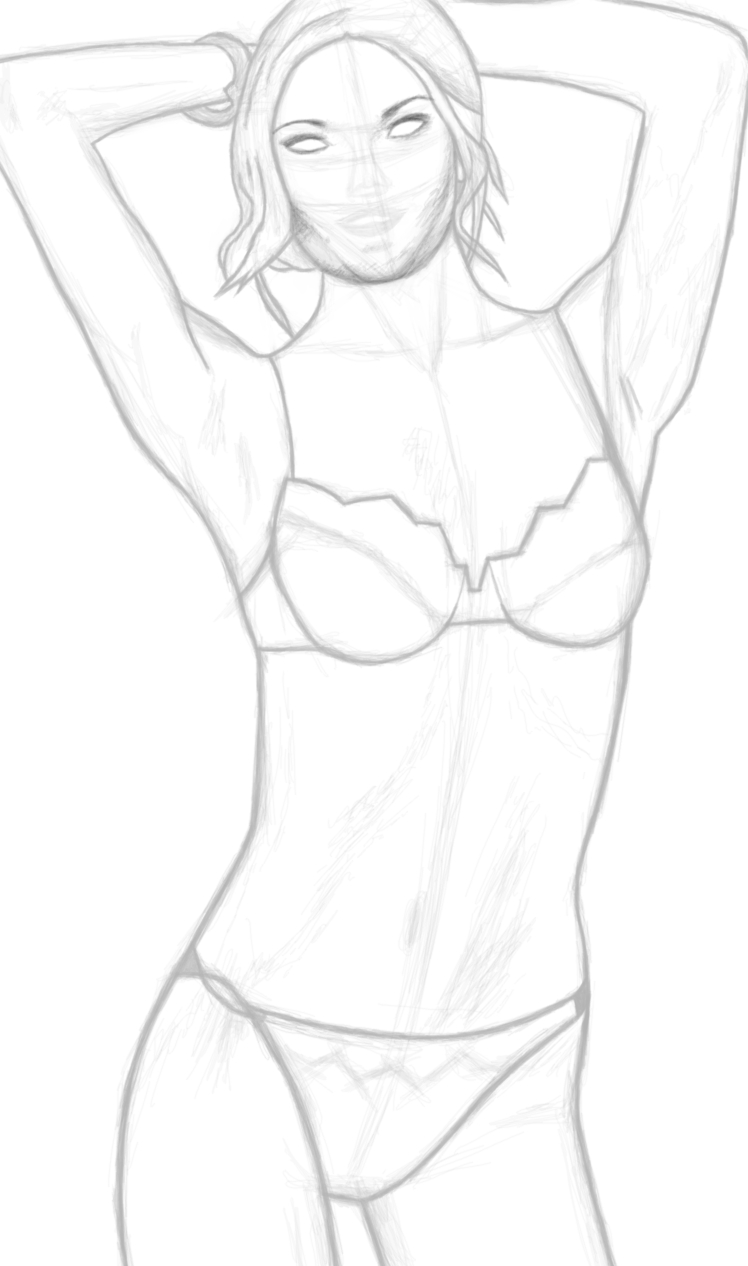 Eine Sache noch zu dem Versuch davor. Ich hatte in der Tat versucht partiell aus dem Kopf zu zeichnen, was mir jedoch offenbar noch nicht so ganz gelingen will. :) Beim 2 Versuch werde ich das Bild in eingescannter Version und einem separaten Fenster neben meinem Arbeitsfenster stehen haben, in dem ich dann zeichne. Zuvor hatte ich ein ganz kleines bildchen von dem Model. Auf diesem ist ihr Kopf nicht mal so groß wie mein Daumen, das Origial hat etwa 7cm breite und 10cm länge. Dann war das Bildchen auch noch nen halben Meter von mir entfernt und ich versuchte nur partiell/gelegentlich auf das Sujet zu blicken.