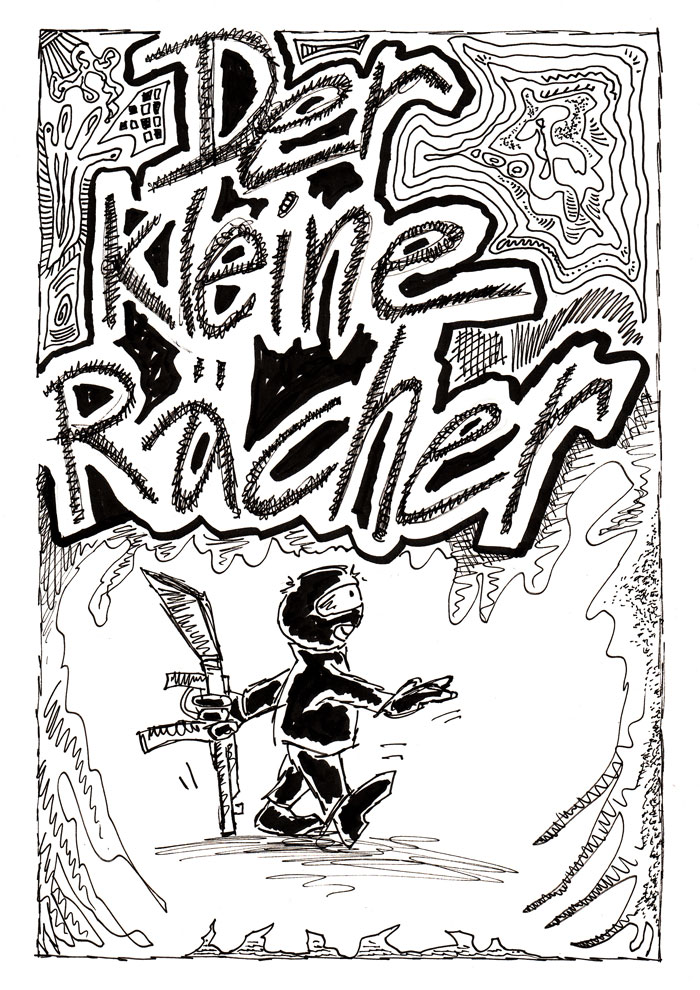 Zumindest wirkt es für mich so. "Der kleine Rächer steht im Zentrum der Gewalt." - Um ihn herum wütet es halt.