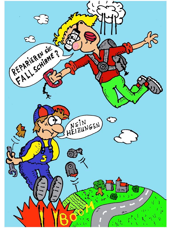 Lieber gut geklaut als schlecht selber ausgedacht.Einen Spruch oder ein Sprichwort bringt einen manchmal auf die Idee, es als Cartoon zu malen.