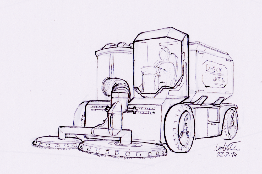 Ich seh's kommen, diese Teile werden die Putzfrau eines Tages ersetzen :D doppelt so produktiv wie eine normale Straßenkehrmaschine , und wahrscheinlich auch doppelt so teuer, sieht nämlich ganz schön schick aus, wenn man sich das silber/blau glänzend vorstellt. Irgendwann werden all die Reichen Leute damit fahren :D Scherz beiseite, sehr gelungene Zeichnung :thumbup: