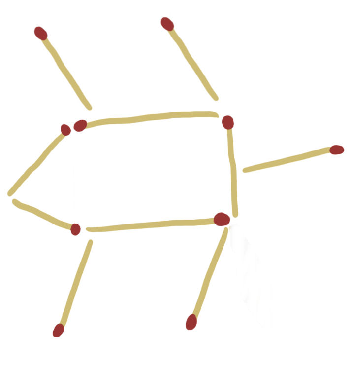 Das soll eine Giraffe aus 5 Streichhölzern sein. Ihr dürft nun genau ein Streichholz umlegen, damit die Giraffe in eine andere Richtung schaut.