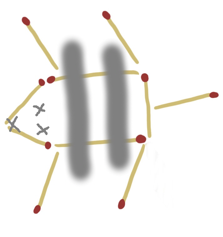 Na dann würde ich doch glatt an die Unendlichkeit denken und somit die Steichhölzer in der Form des Unendlichkeits-Symbol anordnen: