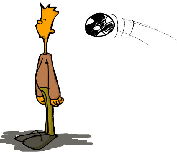 da kann es auch mal passieren, dass er einen ball gegen den kopf bekommt... 5 minuten später hat er es sowieso vergessen!