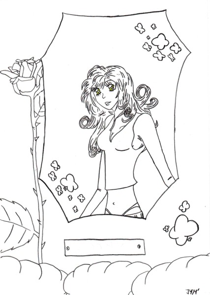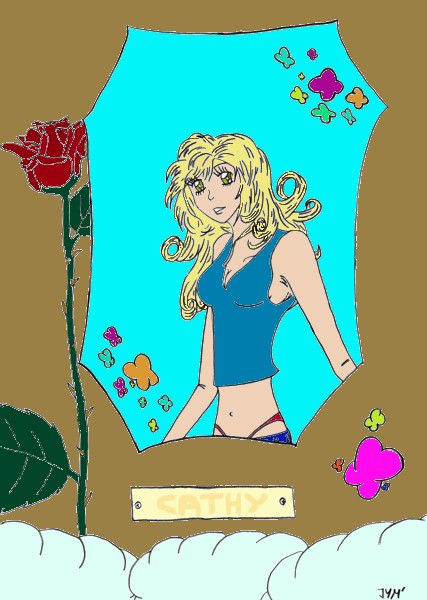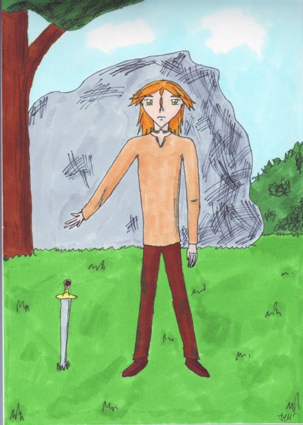Die Strähne, die ihm ins Gesicht hängt, vielleicht etwas zur Seite. Über ein Auge. Sieht verwegener aus, und Du kannst ihm dann auch eine Nase geben. Achja, und die Augen etwas dichter zusammen. Es gibt da das Drei-Augen-Prinzip. Das heißt, daß die Augen etwa eine Augenbreite Abstand zueinander haben sollten.