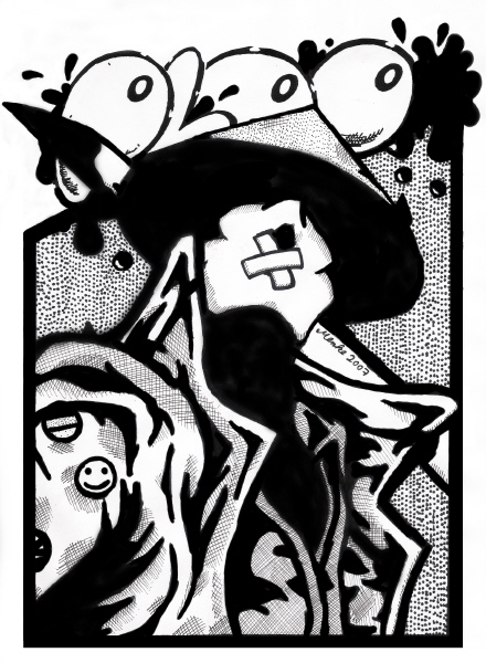 Das mit dem bLut und der Waffe hätte ich nicht verstandne, wenn du es nicht gesagt hättest. Da es in den beiden Comics nicht um Großstadt-Möchtergern-Gangster geht, sind die Verzierungen eigentlich unnötig. Auch die beiden Vicher oben beim rechten Comic passen irgendwie nicht dazu.