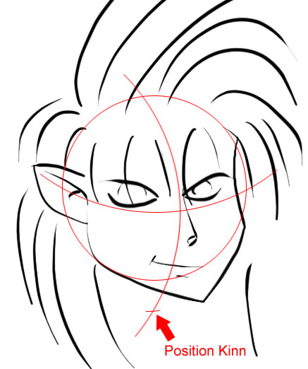 Es folgt dann allenfalls ein Bogen auf der linken Seite des Kinns(vBa) um das Kinn als lang zu kennzeichnen.