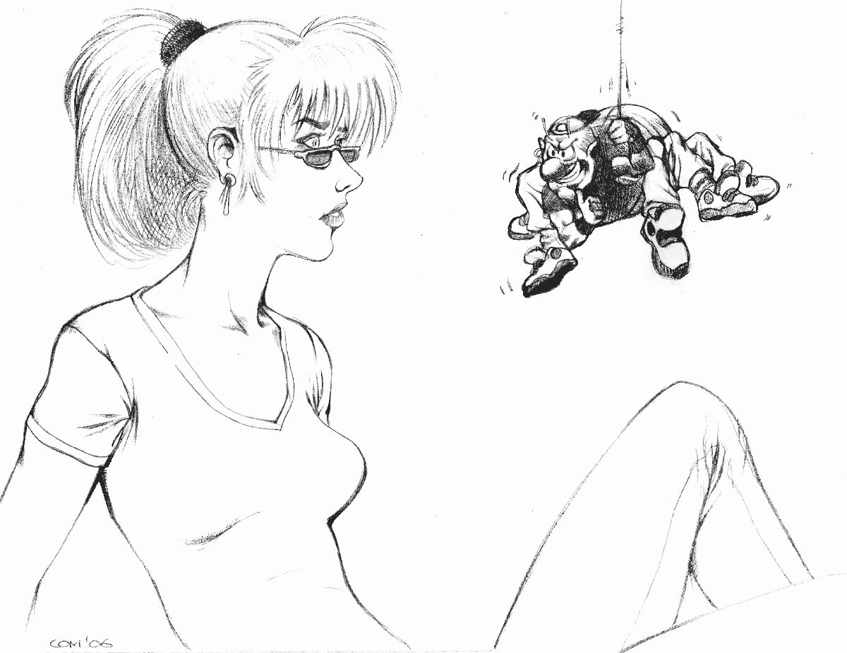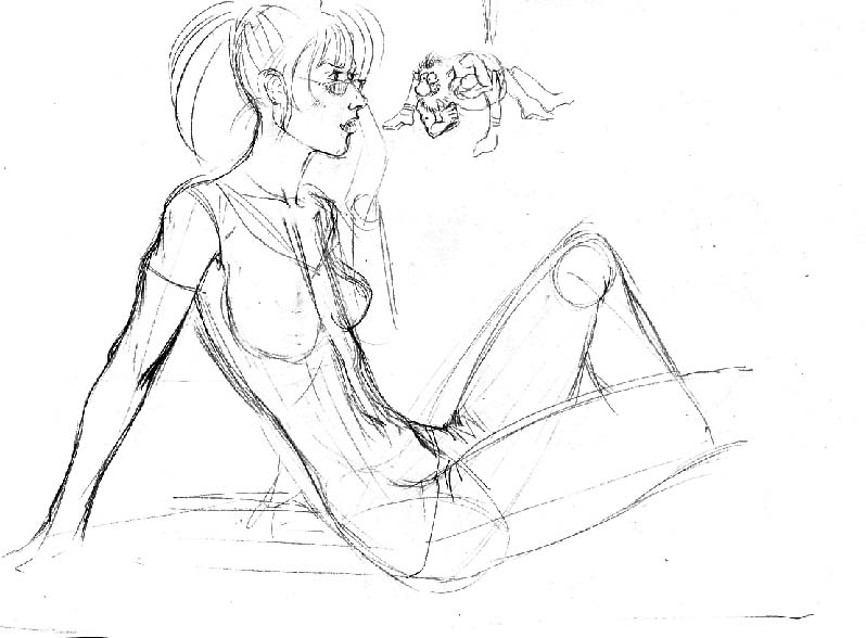 ich finds auch nicht optimal, aber das bild ist ohne irgendeine idee entstanden. ich hab drauflosgekritzelt...zuerst die beine...nur so zum spaß, dann sahs irgendwie nicht schlecht aus, also hab ich weitergezeichnet und schließlich hatte ich die figur. aber nur ne figur ist blöd, also musste ein thema her. und das war das erste was mir eingefallen ist... naja