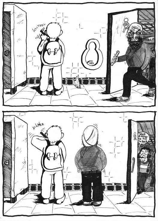 hier IST EIN cartoon. droelf bis pfirsich weitere sollen folgen : er ist zeichnerishc noch nicht ausgereift, ich war von krämpfen aufgrund des montäglichen Konzerts brutalmetalischer Musikrichtung gepeinigt, also kommt da auch bald eine neue version