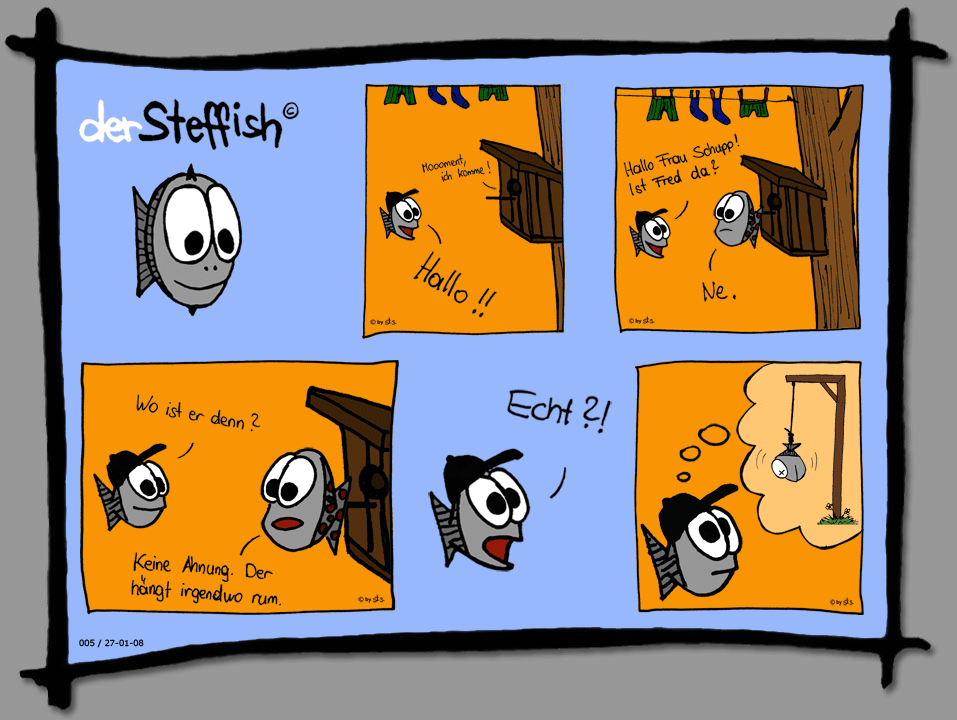 Ich habe den Steffish-Comic bewusst NICHT an der Angel hängend gezeichnet, weil das zu "normal" wäre.