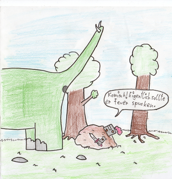 Ich finde beide Gags gut. :thumbsup: Und die Buntstiftkoloration gefällt mir auch. Bäume zeichnen kann ich glaub ich auch nicht.