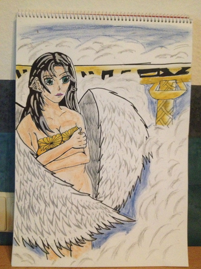 Beim zweiten Bild finde ich toll, dass du auch mit Perspektiven experimentierst. Aber meiner Meinung nach, ist der Kopf doch zu klein geworden.