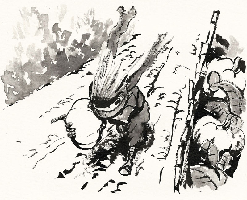 Die Grautöne sind das Ergebnis eines Experiments: Es war "Inktober", also wollte ich nur mit Tusche arbeiten. Deshalb ist das einfach Tusche, mit Wasser verdünnt. Etwas anders als Aquarell, zum Beispiel schwieriger zu korrigieren.