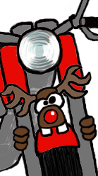 Rotes Motorrad mit rotem Weihnachtsmann? Meinst du nicht, dass das arg viel rot wird?