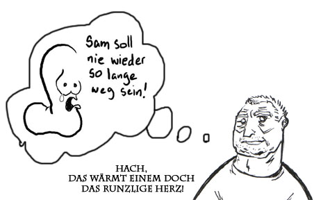 Aaaalso der Gag: Es hat halt in die Hose gemacht - aber offensichtlich nicht in seine eigene. (Schade, damit erkläre ich den Gag für mindergut)
