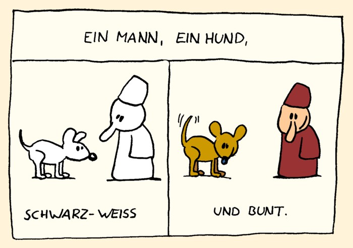 So, habe mal wieder eine ganze Comicseite gemacht! Allerdings nur auf Anforderung; die Comic-Version eines alten Methematikerwitzes, weil eine befreundete Professorin so etwas in den Unterlagen für ihre Ende dieser Woche beginnende Veranstaltung drin haben wollte...