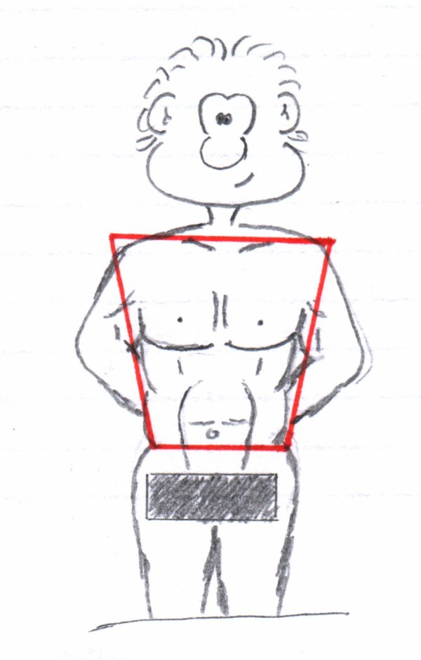 Im Prinzip, das hast Du bestimmt auch schon einmal gehört, ist der menschliche Oberkörper trapezförmig aufgebaut. Bei der Frau steht das Trapez auf der breiten Kante, beim Mann auf der schmalen Kante.