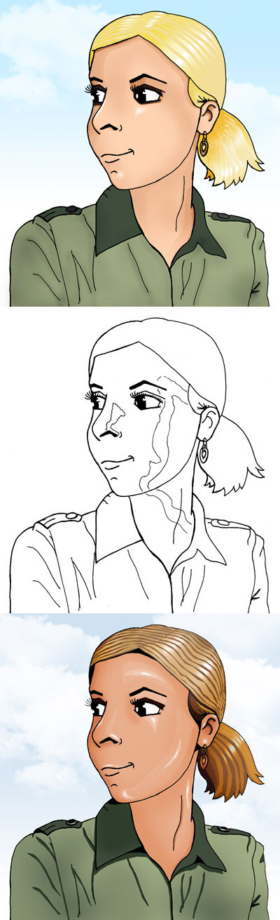 Ich wollte damit so ein wenig die Kurven des Gesichts betonen. Aber sowas sieht wirklich schnell faltig aus. Einfach weglassen hab ich mal probiert. Ich finde dann fehlt was. Ich versuche es mal einzufärben und mehr so als weichen Schatten einzurichten.