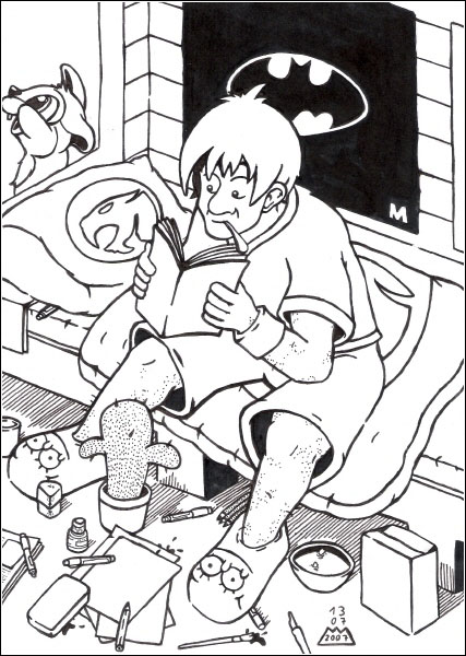 Das Bild ist auch eher nebenbei entstanden und hat bis zur Fertigstellung etwa eine halbe Stunde gedauert. Die obere Hälfte des Hintergrundes ist im Original übrigens Blau, aber der Scanner will es nicht, dass es so wiedergegeben wird.