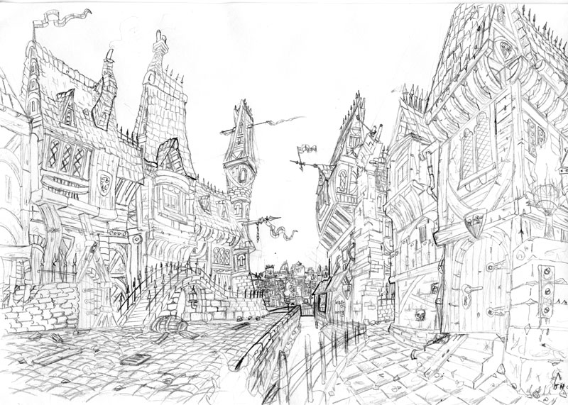 Okay, ich hab das Bild nochma neu angefangen, finds aber viel besser als die alte Version...Farbe kommt natürlich auch noch ;)