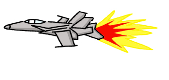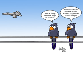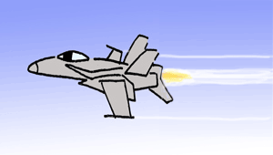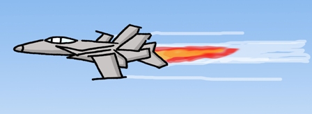 Die Flamme die hinten rauskommt, hat eigentlich immer den selben Abstand zum Flieger und der Abgasstrahl und der Kondenzstreifen würden sich dann in einer geraden Linie unter den Sprechblasen vorbei durch das ganze Bild ziehen.
