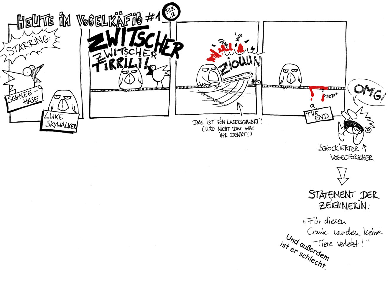 Kleine entstehungsgeschichte: Meine beiden Vögel (Schneehase und Luke Skywalker) zoffen sich zur Zeit immer weil Schneehase nie die Klappe hält, wenn Luke schlafen will :]