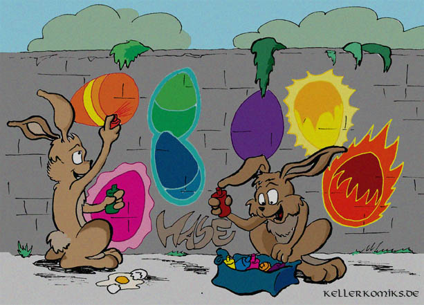 wo wir grad bei effekten sind: aus der spraydose von dem linken hasen kommen nur ein paar linien... da wär vielleicht ein anderer effekt besser gewesen :)! naja wobei so schlecht is es gar nicht und ehrlich gesagt weiss ich auch net was man anders machen könnte (eventuell noch mit dem airbrushwerkzeug drüber um den "dampf", der beim sprühen entsteht anzudeuten?!)!