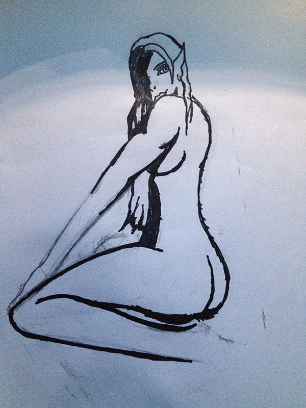 Die Zweitkoloration des Gitarrenbildes finde ich schon ganz gut, vor allem dieser Tuschepinseleffekt am Bein ist interessant. Wie ist der entstanden?