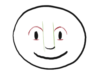 Versuch doch mal ein Comic Gesicht erstmal nur von vorne und benutze Linien fuer Augen, Nase und Mund. Wenn du Probleme bei Augen hast kann ich dir mal einen Trick sagen den ich ab und zu nutze. Versuche mal passend einfach nur die Pupille zu malen halt gerade, nicht nach links guckend oder so. (bild1)