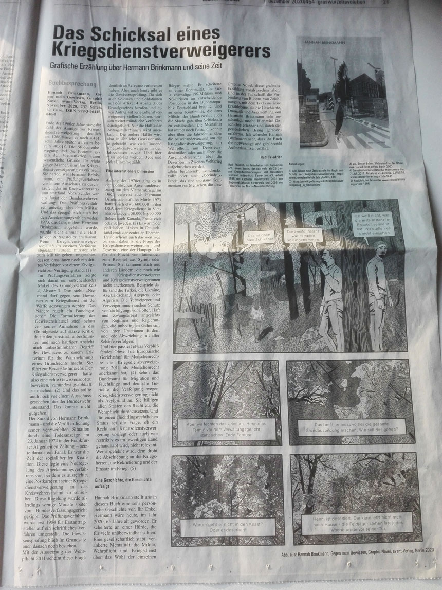 Die Leseprobe überzeugt mich ehrlich gesagt nur so halb. Das Ganze wirkt etwas hölzern. Und muss mensch jetzt alles Graphic Novel nennen? Früher hätte man es als Sachcomic bezeichnet. Das wäre hier auch passender. https://www.graswurzel.net/gwr/wp-conten…k_Leseprobe.pdf