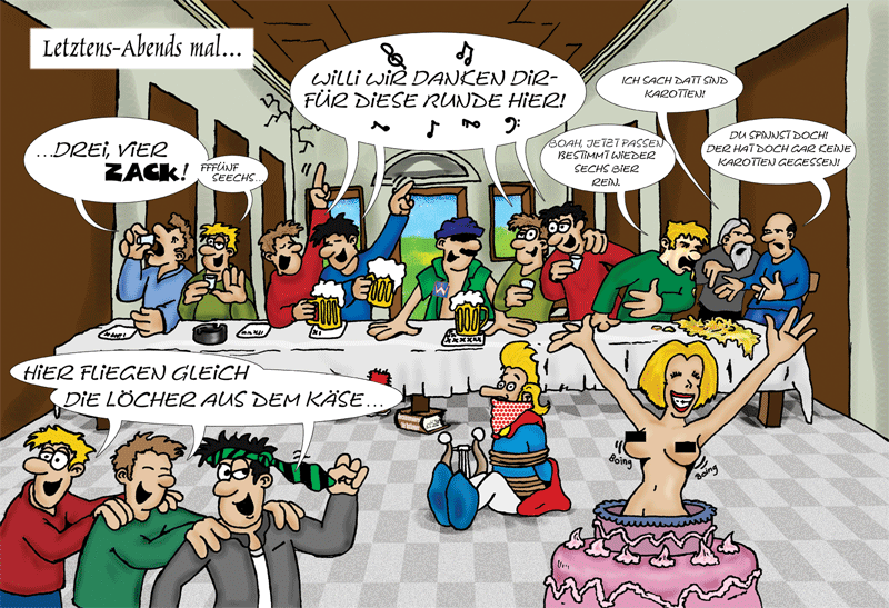 Fast - nicht der letzte Tag. Aber mein jetztiger Chef hat mich zum Ende des Praktikums (Schauwerbegestalter) gefragt, ob ich Comics zeichnen könne.