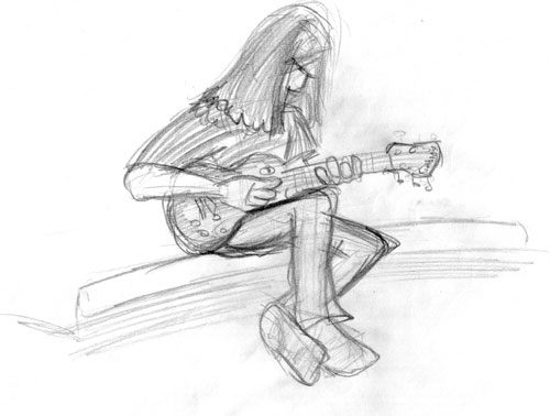 das is mein cousin phil, der auf meinem bett sitzt und mit meiner gitarre spielt.