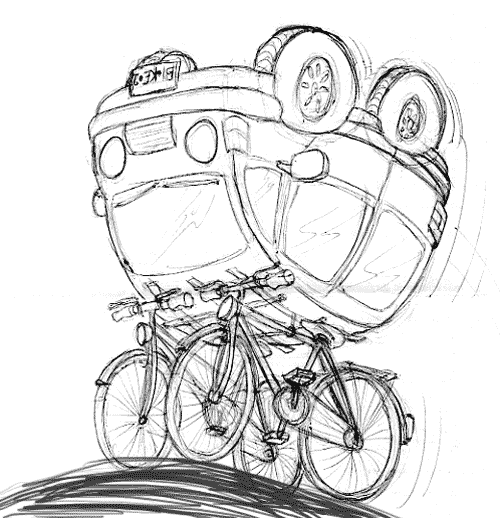 Passt doch, passt doch. Aber guck mal, die Fahrräder bestehen bei dir nur aus Strichen, das sind ja aber doch schon richtige Rohre in Echt, die auch so gezeichnet werden sollten.