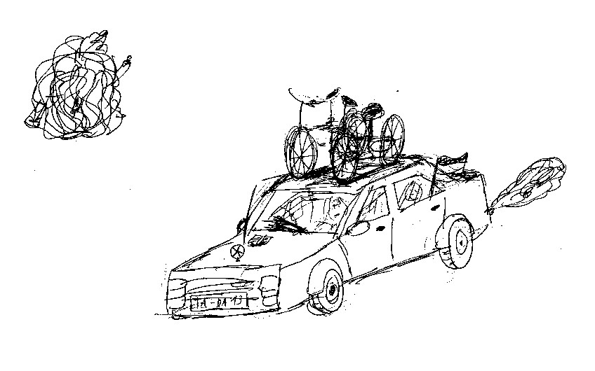 beim einscannen hab ich es aus versehen auf den kopf gestellt, und dann fand ich es irgendwie lustig, deshalb blieb es dann so. fragt mich bloß nicht was für ein auto das sein soll, ich hatte keine vorlage und hab von autos keine ahnung - hauptsache es hat vier räder und fährt... :D
