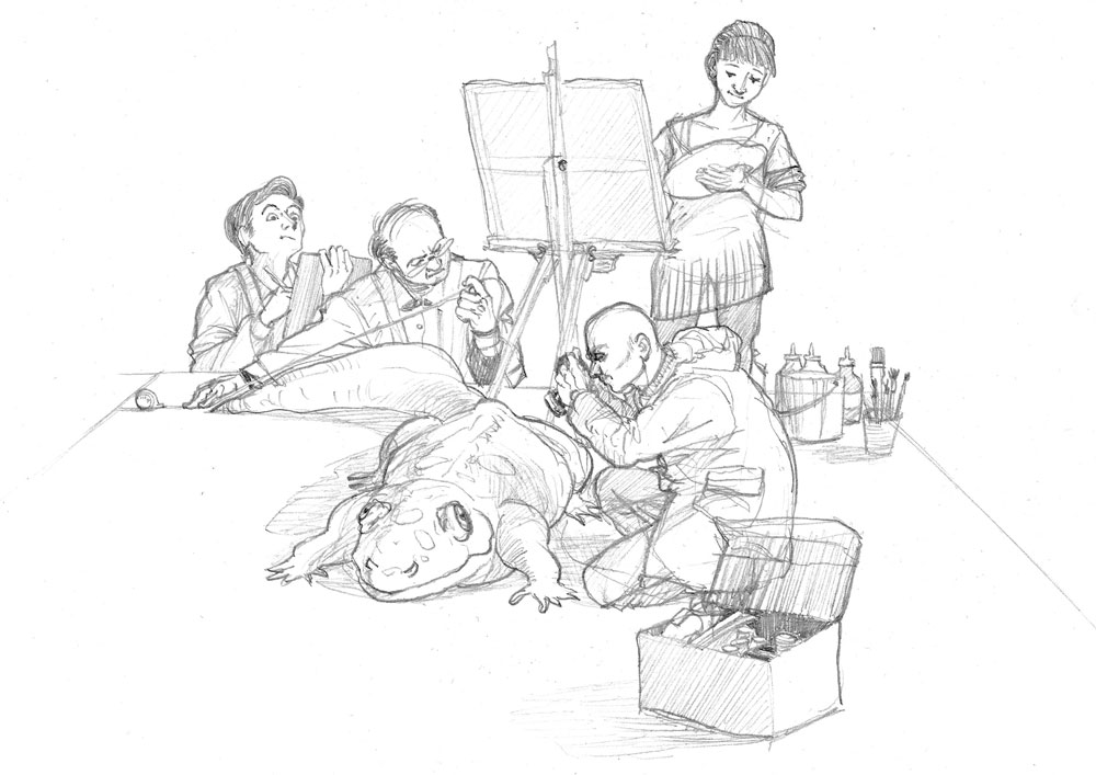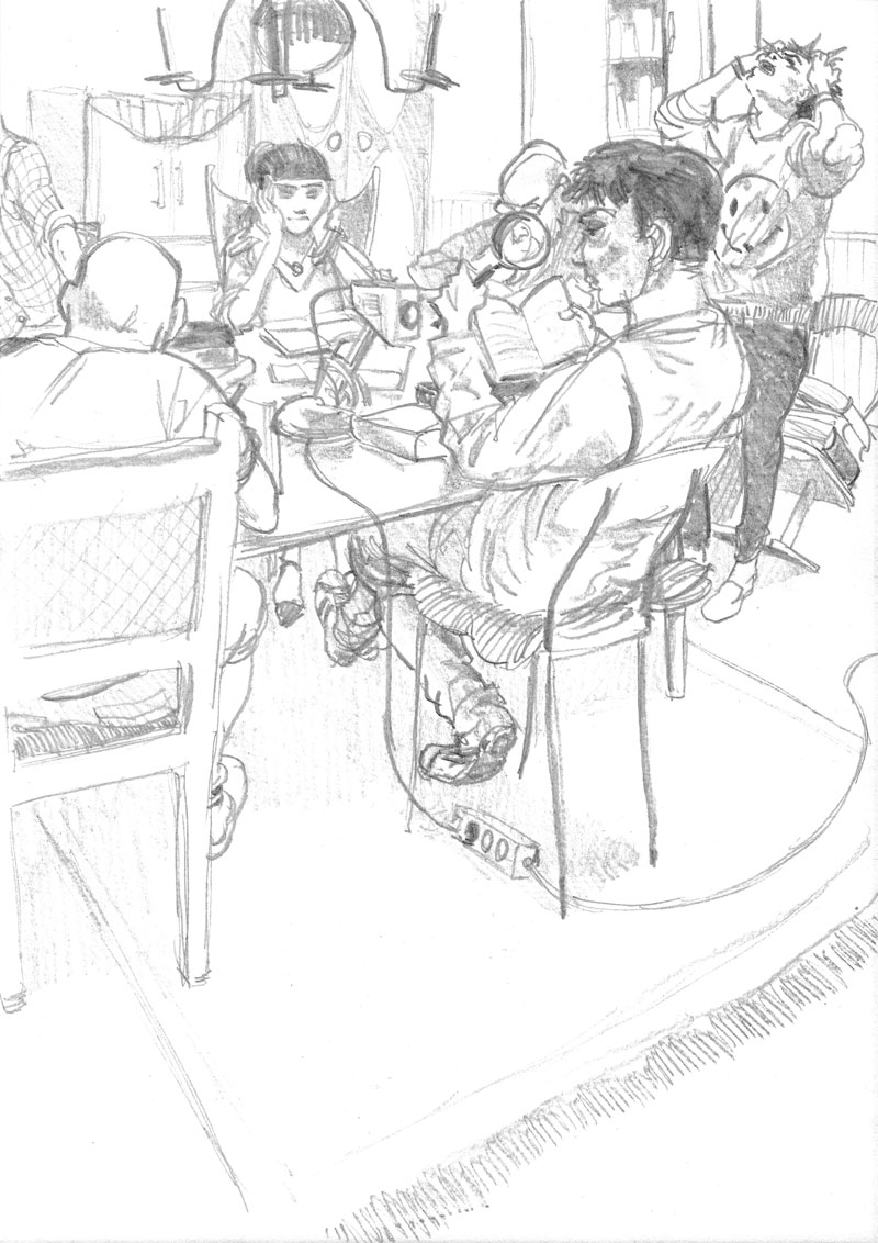 Kim Jung Gi zeichnet häufig Situationen aus dem Alltag, vermischt mit Phantastischem, die sehr detailreich (teilweise überfüllt) sind. Ich tue mich schwer mit dem dazugehörigen "Immer-weiter-Zeichnen", u.A. weil ich ohne Vorskizze fürchte, das bereits Bestehende zu zerstören.