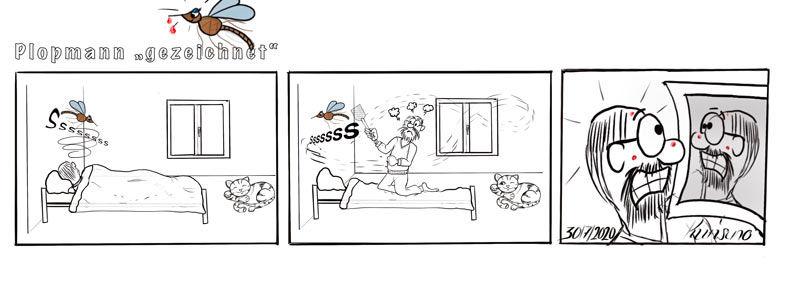 In der Realität war es allerdings so, daß ich die meisten Mücken erwischt habe, bevor sie mich erwischten. Nur meine Nachtruhe war dahin... Es war so ähnlich wie bei Onkel Fritz und den Maikäfern bei Wilhelm Busch.