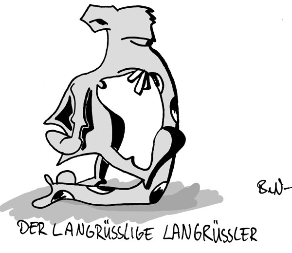 Der hintere Fuß sieht ein bischen so aus als ob er sich hinter dem Rüssel in den Boden bohren würde weil er nur so wenig dahinter vorguckt. Aber sonst sehr schön.