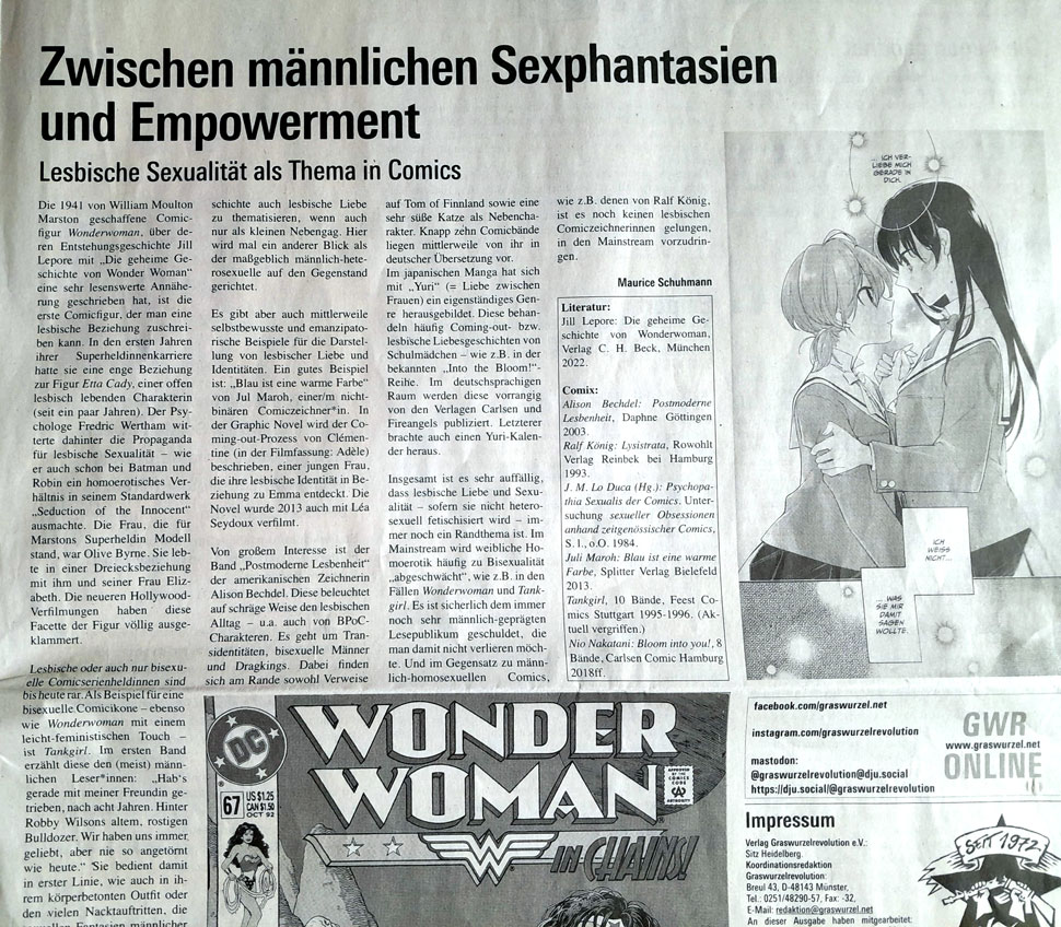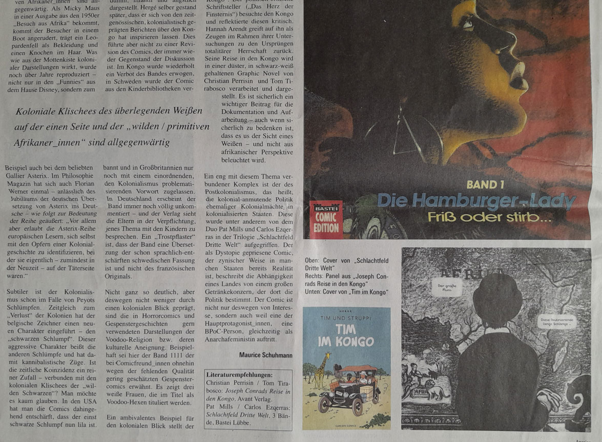 Maurice Schuhmann hat wieder in der Graswurzelrevolution über Comics geschrieben. In der Ausgabe #484 / Dezember 2023 unter dem Thema Kolonialismus und Postkolonialismus...