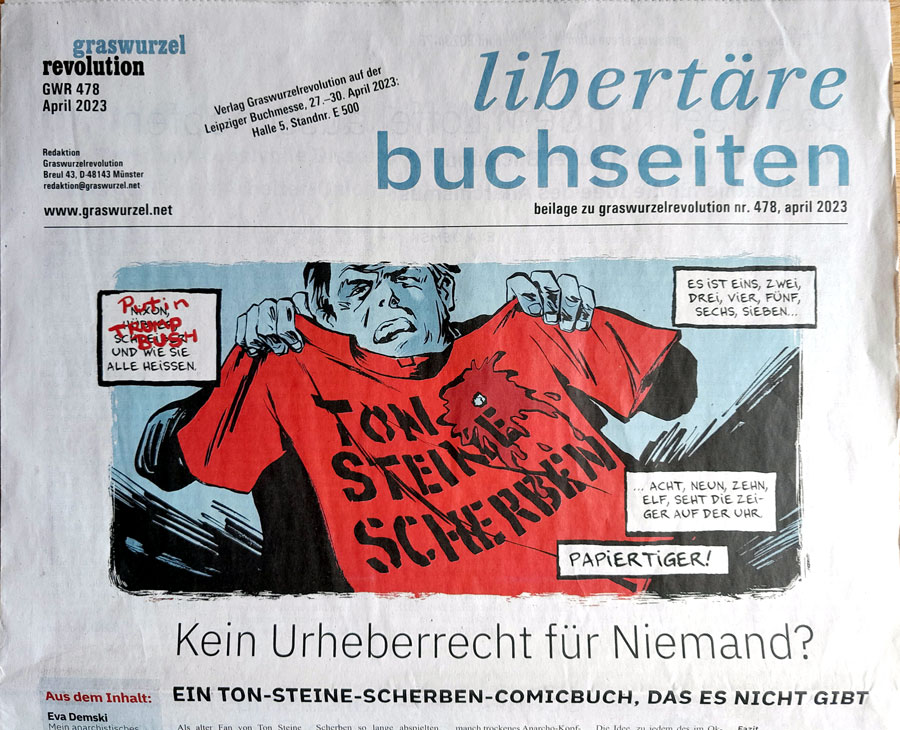Danke, daß Du uns immer über die "Graswurzelrevolution" auf dem laufenden hältst. Ich glaube, allgemein sind Comickritiken in Zeitungen seltener geworden. Wenn das so ist, denke ich, das liegt nicht am Thema Comics, sondern an Sparmaßnahmen. Es gibt weniger Platz in den Feuilletons.