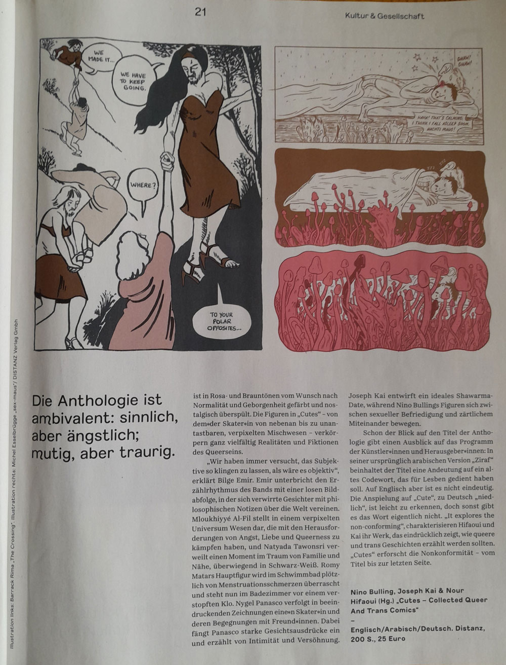 Mich hat interessiert, was für ein Comic in dieser Anthologie ist. Man erfährt es nicht in dem taz-Artikel, aber in der Ulltein-Leseprobe: "Hedwig & Inch" von Noemi Y. Molitor. Näheres weiß ich aber nicht.