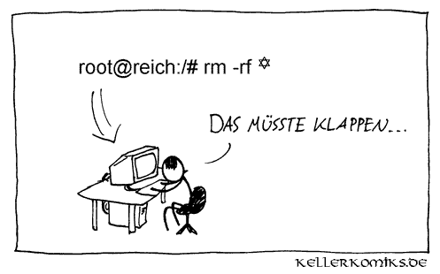 Und das Sternchen bedeutet "ALLES löschen". Der Kerl macht also sein eigenes System platt -> Satire