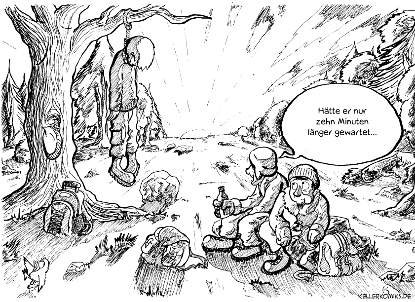 Wenn er sich nicht aufgehängt hätte, hätte er den Sonnenaufgang miterlebt? ?(