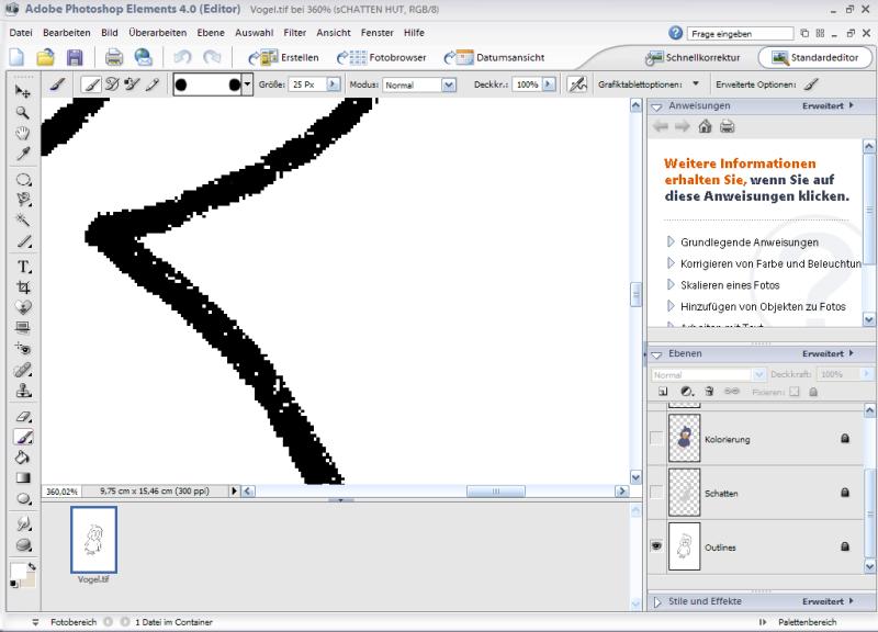 Aber wie sieht denn das Bild überhaupt aus, wenn dus nicht so nah heran gezoomt hast? Vielleicht passt das ja eh. Hast es ja immerhin schon koloriert