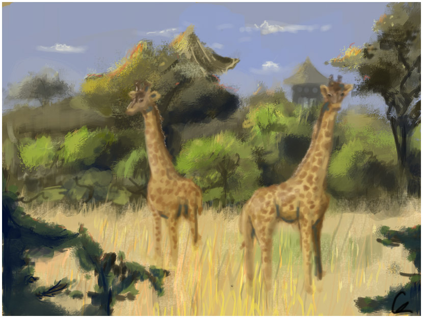 noch was, in photoshop gemalt., würd mich über kritik freuen, glaub dir kalten blautöne harmonieren nicht sooo gut mit dem Rest. & naya an den giraffen könnt man sicher auch noch arbeiten ;).