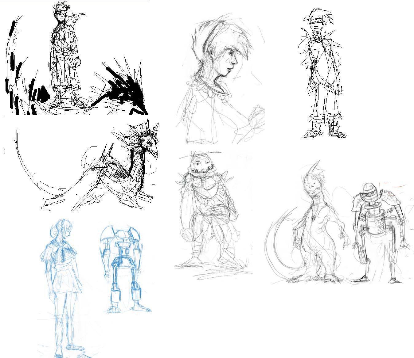 Ooooh, ich habe ein Fave in den Skizzen... Der Drache rechts unten. Gibt's den mal ausgearbeitet? *plüschaugenmach* :)