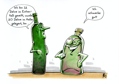 und zum anderen auch wegen der Pointe, da ich auch lieber einen Wein trinke, der schmeckt anstatt dass er teuer ist.