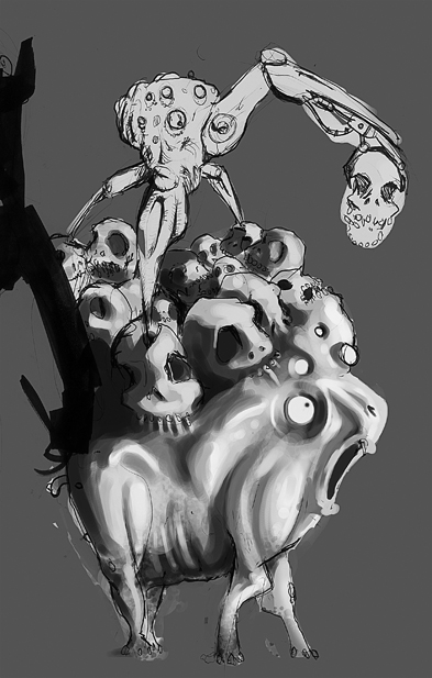 Jetzt geh ich heim. und mach morgen an dem bild weiter. Das soll irgendein oger-artiger werden, der irgendwas wegschleppt. am besten einen menschen ;D