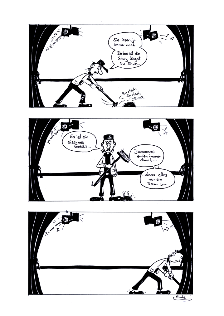 Ach ja: Das im zweiten Panel heißt "Merkwürdiges Ende".