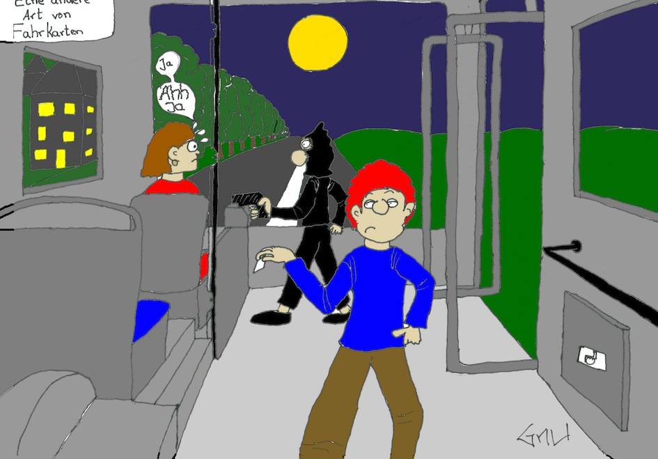 wie wärs wenn du noch ne sprechblase einfügst?ungefähr so was:"die selbstbedienungsrestaurants sind auch nicht mehr das was sie mal waren!"![]()