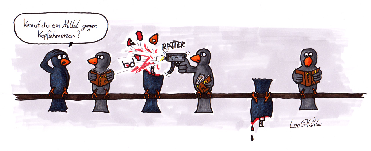 besonders beeindruckt mich das waffenarsenal des rechten vogels. es wird schon deshalb nicht langweilig, weil er immer ne andere knarre benutzt... also gern mehr davon! :thumbsup: